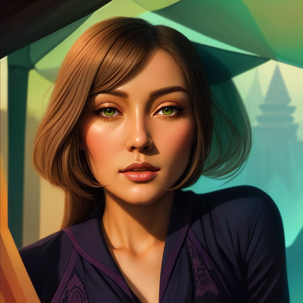 Prompt: stylized Portraiture with aura, style by Curtis Cole and barclay shaw, soft pastel colors, gradient color inking in traditional Japanese ukiyo-e aesthetics with art nouveau approach, styled by Overton Loyd, influenced by academical art and the drawing style of Geof darrow, steve hanks and barclay shaw, inyricate hues, sharp focus, mystical, gradient colors, dyed, lush, serene, somber, lighting by William Turner, flowing hair illusion, stylized threads, cascading down back, sensual expression, tranquility, ethereal beauty, resilience of colors and textures, brightness 1.9, cottagegore 1.9, tetradic color scheme green beige brown amber, beautiful priestess, hues, stylized portrait that merges pulp art and layered geometrical vector art, watercolor and ink style of GeorgiaO'Keeffe, barclay shaw, Margaret Keane, background with geometrical themes and sci-fi imagery by buckminster fuller, octane render illustration 1.5, traumacore 1.2, colored line drawing, stacked-up lines in hues by Overton Loyd and Arlie Opal, close-up, space age style, detailed saturated background, quilling, astronomical details in charcoal drawing with acetate details, beautiful composition 1.9, art nouveau details by Margaret Keane and Megan Duncanson. American gothic 1.3, tetradic color scheme lilac beige red green, otherworldly, wispy filaments and flares, sculpted details by paul kidby, Saturated colors 1.8, dynamic lighting 1.7, ambient occlusion 1.5, anisotropic filtering 1.7, raytraced shadows 1.8, radiance, divisionism, abstract, coherent, otherworldly, omplexity, joyful existence, detailed weaving, vibrant textured colors, intricate textures, dethereal atmosphere, soft lighting, high resolution, uhd,hdr, octane render illustration 1.5 golden ratio, divisionism,