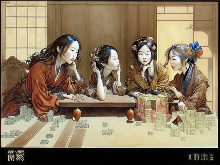 Beautiful women playing mahjong.