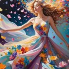 A surreal landscape features giant, imaginative creatures alongside intricate, floating cities. Ethereal colors blend with whimsical structures and dreamlike elements, creating a fantastical scene.