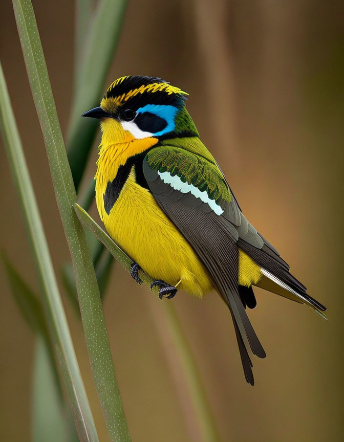 Paper-crafted yellow bird on branch with leaves and flying birds against tan background