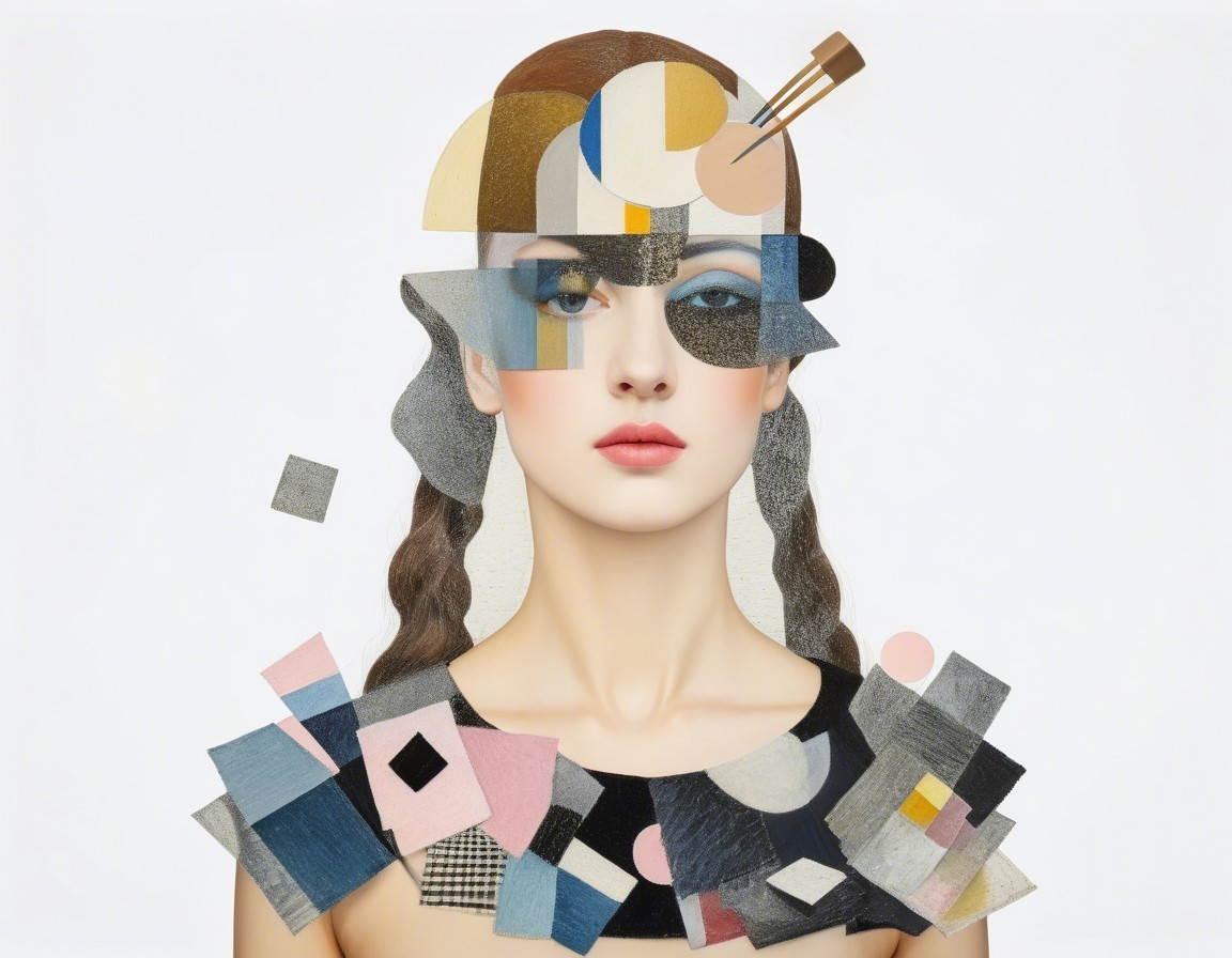 Prompt: Collage portrait; Oil painting by Wassily Kandinsky and Kazimir Malevich. Light composition with a great number of delicate tones which often flow into each other. Light cold delicate colors with dominant pink, yellow, blue and black, pencil sketch, naive art, 16k, primitivism, multiple exposure, multilayer, multilayered three-dimensional drawing