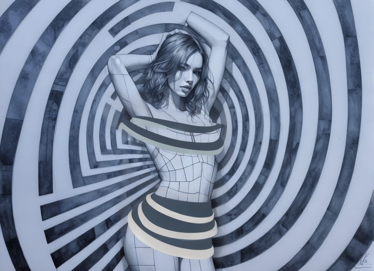Beautiful young woman, cubism abstract background