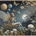 Skeletal Fairy in Moonlit Floral and Skull Scene