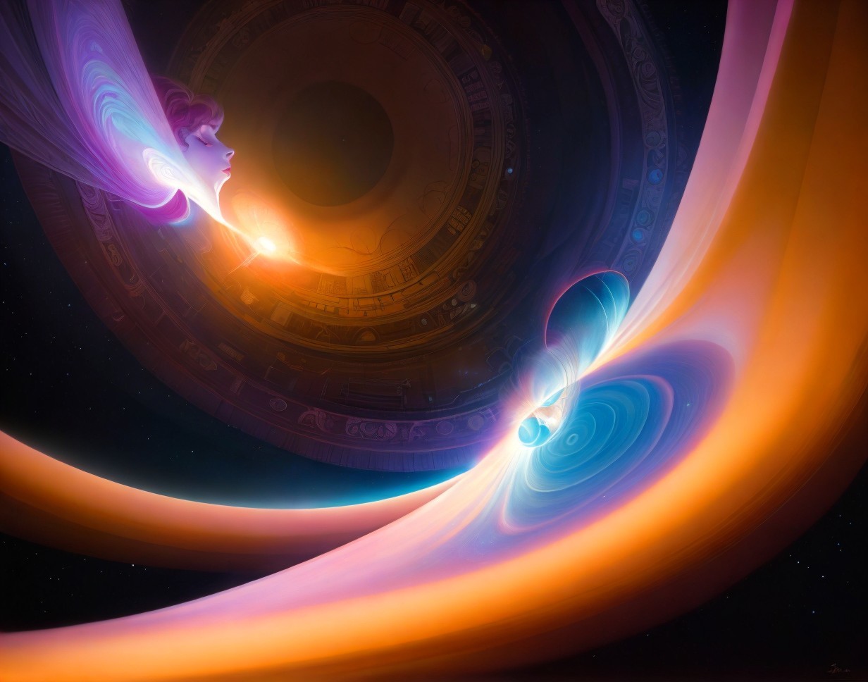 Surreal artwork: Close-up eye with fiery and feathery swirls