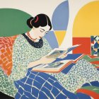 Woman reading in bed: Chinese watercolor releasing dopamine