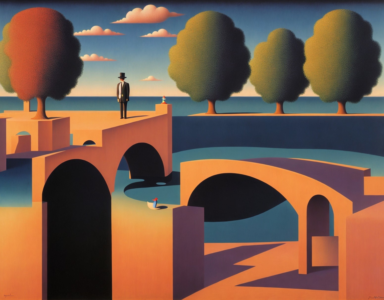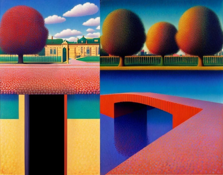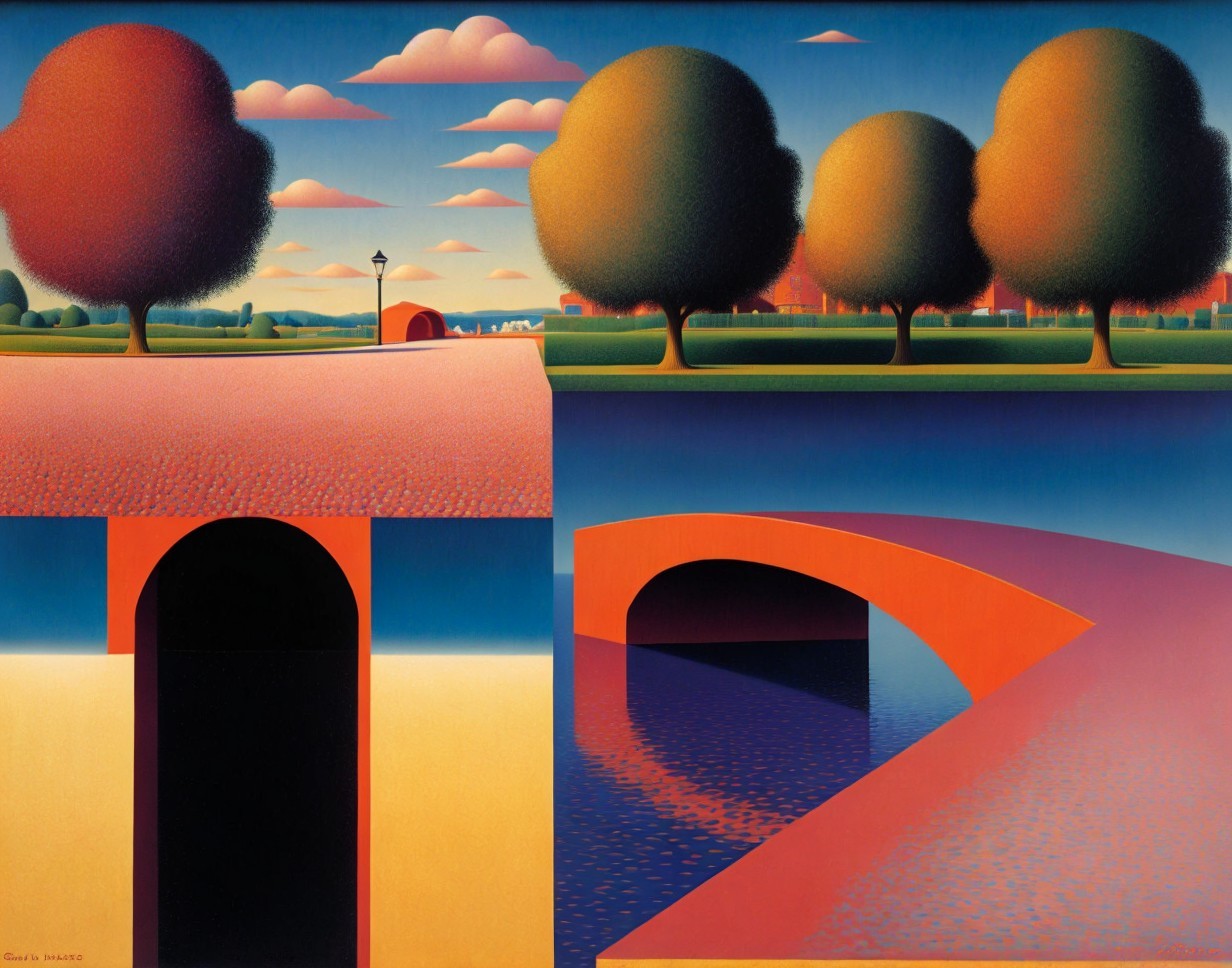 Surreal Landscape with Abstract Trees and Twilight Sky