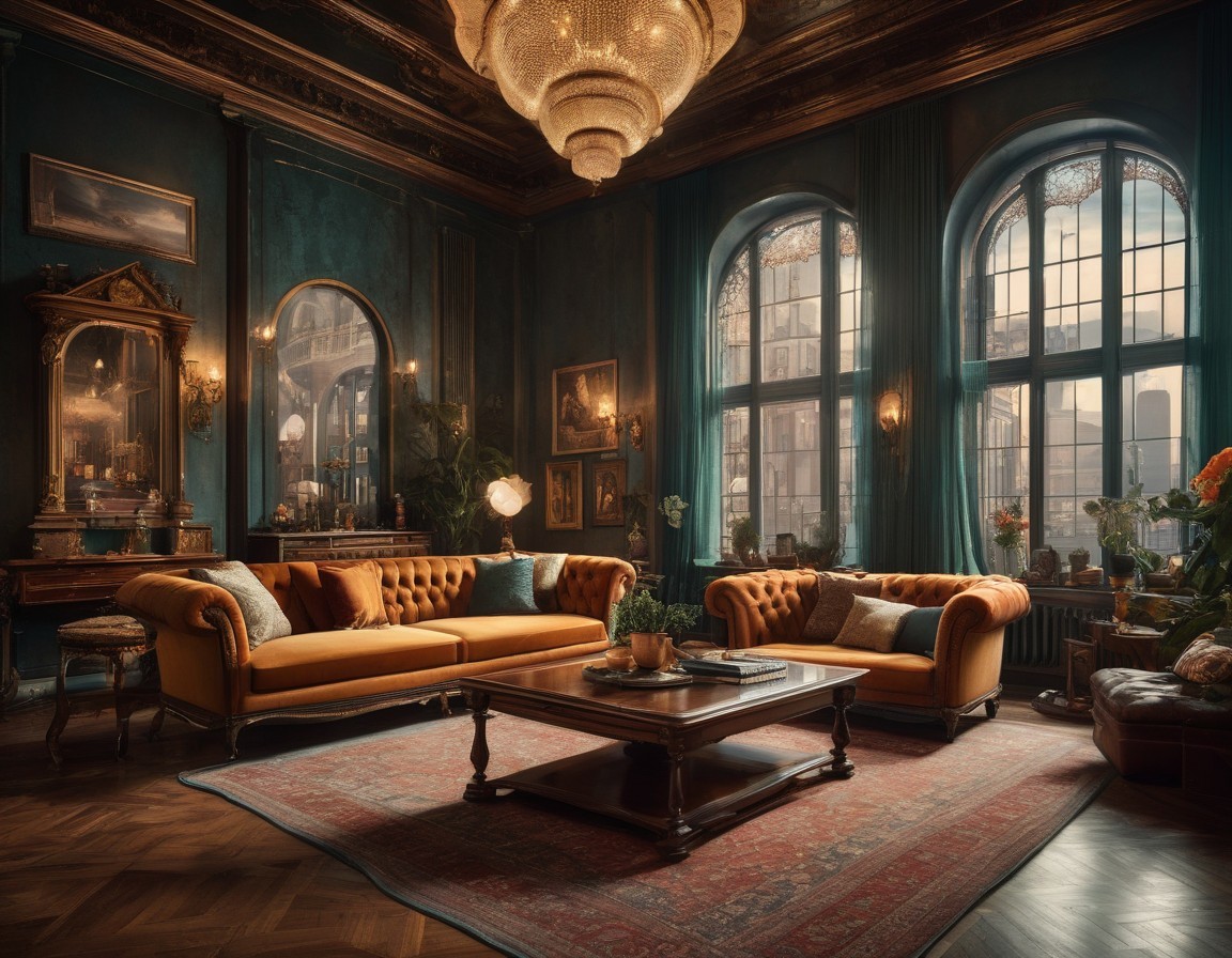 Prompt: 151515;[stunning photograph of a cityscape captures the nostalgic charm of the Renaissance buildings, blending fantasy vintage-retro, surreal, and cyberpunk aesthetics. This award-winning image embodies the magical atmosphere of the city with remarkable realism, utopian allure, and intricate artistic details]:[High-res 8k photo of living room in vintage attire, captured from above in surreal sci-fi setting, enveloped in eerie lilac light against fog; vintage aesthetic, highly detailed, cinematic lighting; cinematic lighting, 8k resolution, surreal atmosphere, trending on ArtStation.]{surreal splash art, pale translucent skin, hi-res, photorealistic, Nikon Z9, 85mm F1.2, DOF, smooth and realistic HDR}