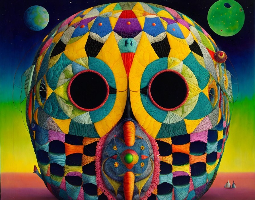 Prompt: "Fishing for Dark Matter in the Universe. Surreal in the style of Hieronymous Bosch, Naoto Hattori. Mesh fencing as patchwork. Minimilist, surrealism of Roberto Matta."
