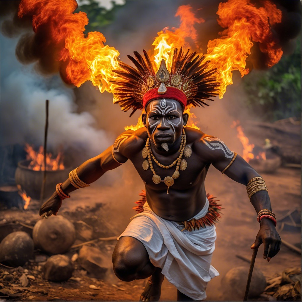 A fierce tribal igbo warrior who has been blessed with powers from the gods running to war
