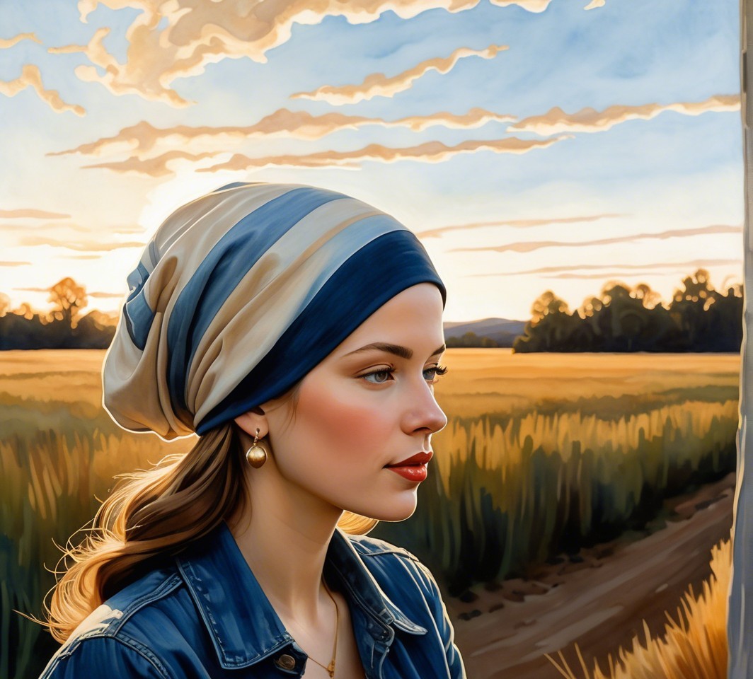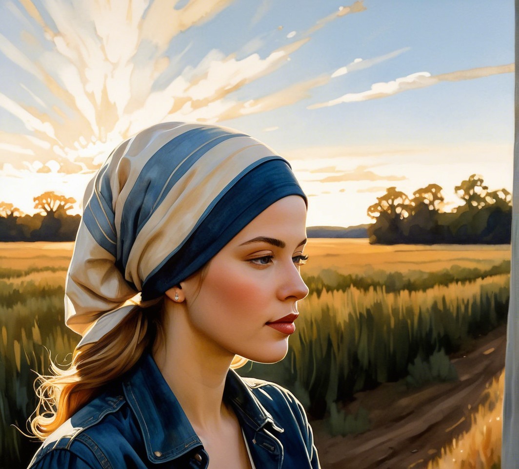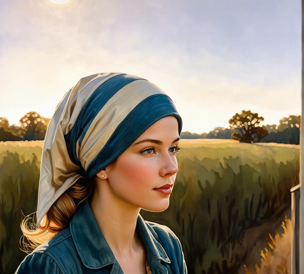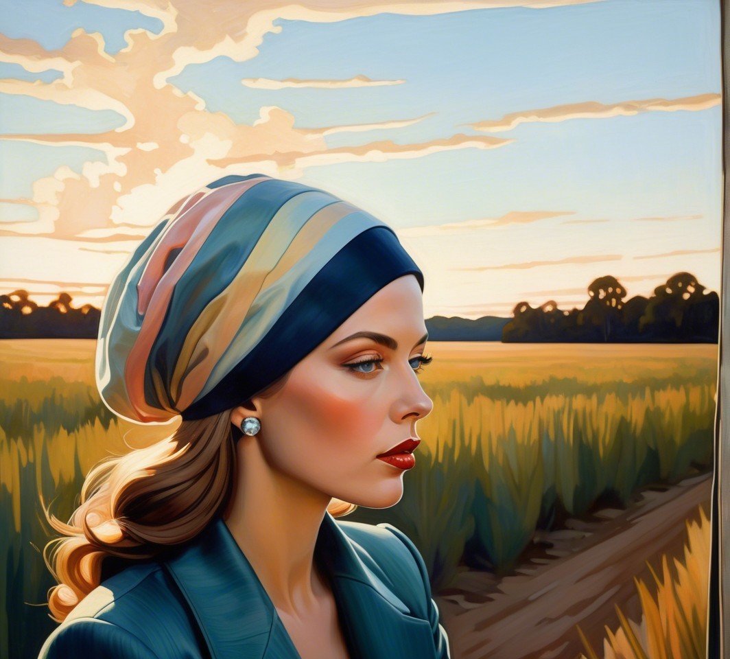 Prompt: Abstract Portraiture in style of Joseph Christian Leyendecker, naturalist iconography, hues of Valentina Kulagina, soft dappled lighting, sinister lines. Lavish shading and extravagant colours in a pastel palette. Enhanced colour palette.acrylic, glossy, expired film, 1970s advertising art merged with pulp art, traumacore 1.2, intense gaze, only curves, dreamlike, motifs, distorted colors, abstract, vibrant, imaginative, detailed textures, mind-bending watercolor and ink, dyed, great depth and scale, earth tones, dark sky, crisp realism, blue tones, foampunk 1.4, fantastical setting. serene, quaint, joyful, precuse tiny brushstrokes, textured, warm color scheme of green and brown, vaporous, wide angle, teenage Temptress surrounded by bush weed, cane, wispy gold filaments, tiny outlines by Susan Seddon Boulet, cel-shaded, natural sheen, bokeh, romantic abstraction, flowing hair illusion, only curves, symmetrical, precise integrity of lines and shapes, Watercolor extrusion by Henry Robertson Craig merged with gouache by ho baron, intricate anatomically correct features, misty background, movie still, hatching, blotting, plasticity 1.6, diffused, soft dappled lighting, pale skin tone and multi-layered almond-shaped eyes, blonde curly hair is styled in an intricate updo with few blonde streaks framing her face, headscarf, dyed, weathered, only curves, LiDAR point cloud, precise Gelsculpt, Novelty architecture, chiaroscuro lighting, bold strokes, shadow mapping 1.3, symmetrical, hallucinatory Fantasy by Brian Froud, Folklore, intricate tribal patterns by Mary Blair, tesselated line-art details by ho baron, precise Gelsculpt 64K, Novelty architecture, weathered, plasticity 1.6, 3d effects 1.3, parallax occlusion 1.5, anisotropic filtering 1.2, raytraced shadows 1.8, radiance, subtle sepia tones,divisionism, overall composition by john buscema and ho baron.and Francis Bacon and Egon Schiele and Remedios Varo,
