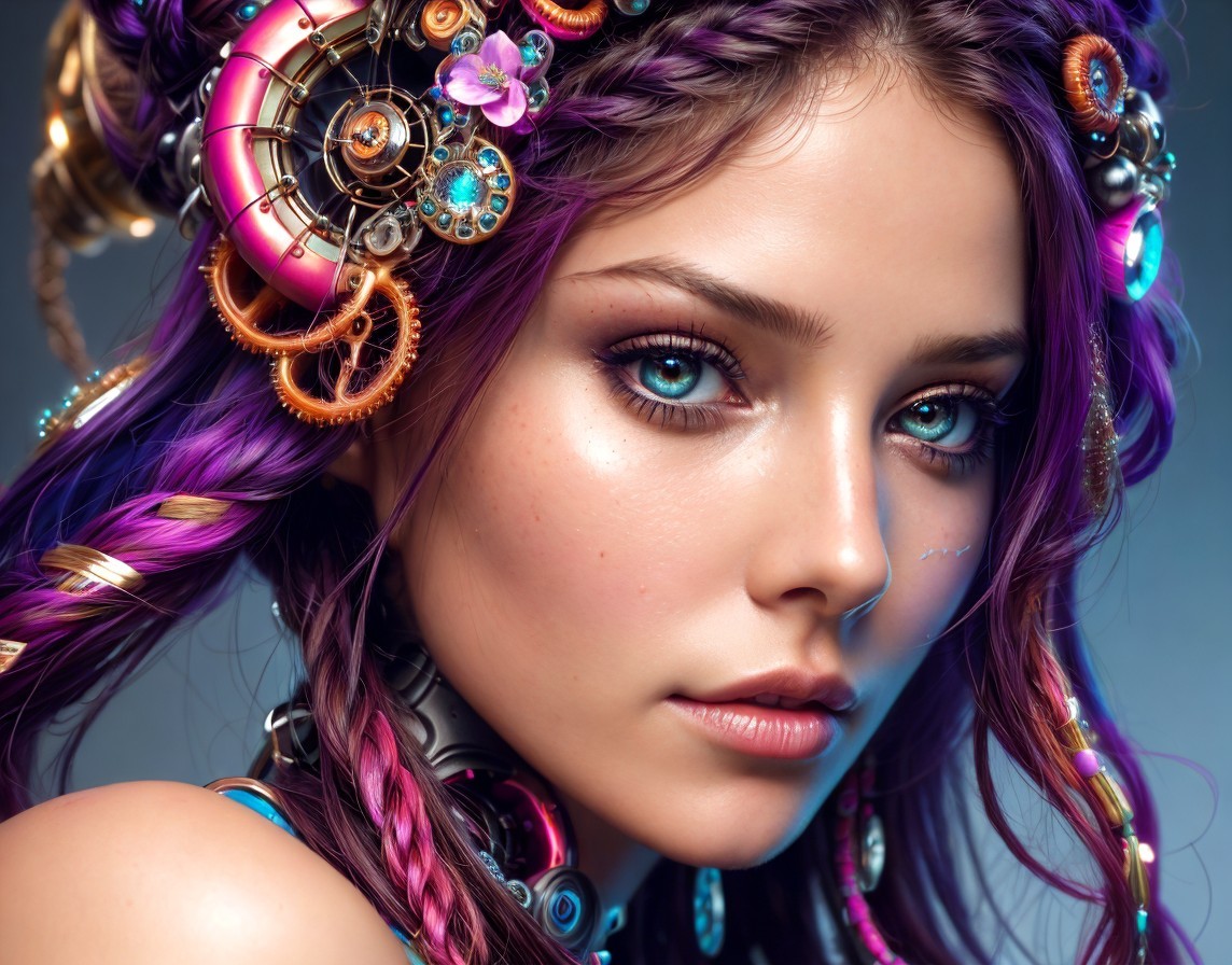 create a close-up portrait, a stunning octopian cybernetic girl with a symmetrical face, soft skin, realistic skin, by Shane Black, by Carne Griffiths, delicate detail, bohemian hippie style, lots of braids and beads in her hair, painstaking attention to detail, extremely detailed, red, black colors, hyperrealistic, high definition, hdr, photorealistic, award-winning, exquisite craftsmanship, 8k, masterpiece, crisp quality, highly detailed, 4k, ultra-realistic, dreamlike, fabulous, overwhelming, luscious, wonderful, amazing, breathtaking, charming, very stylish, lovely, appealing, fascinating, dreamy, astonishing, polished, gorgeous, splendid, tantalizing, delightful, graceful, mesmeric, captivating, very pretty, alluring, eye-catching, very refined, divine, trendy, magnificent, perfect face, freckles