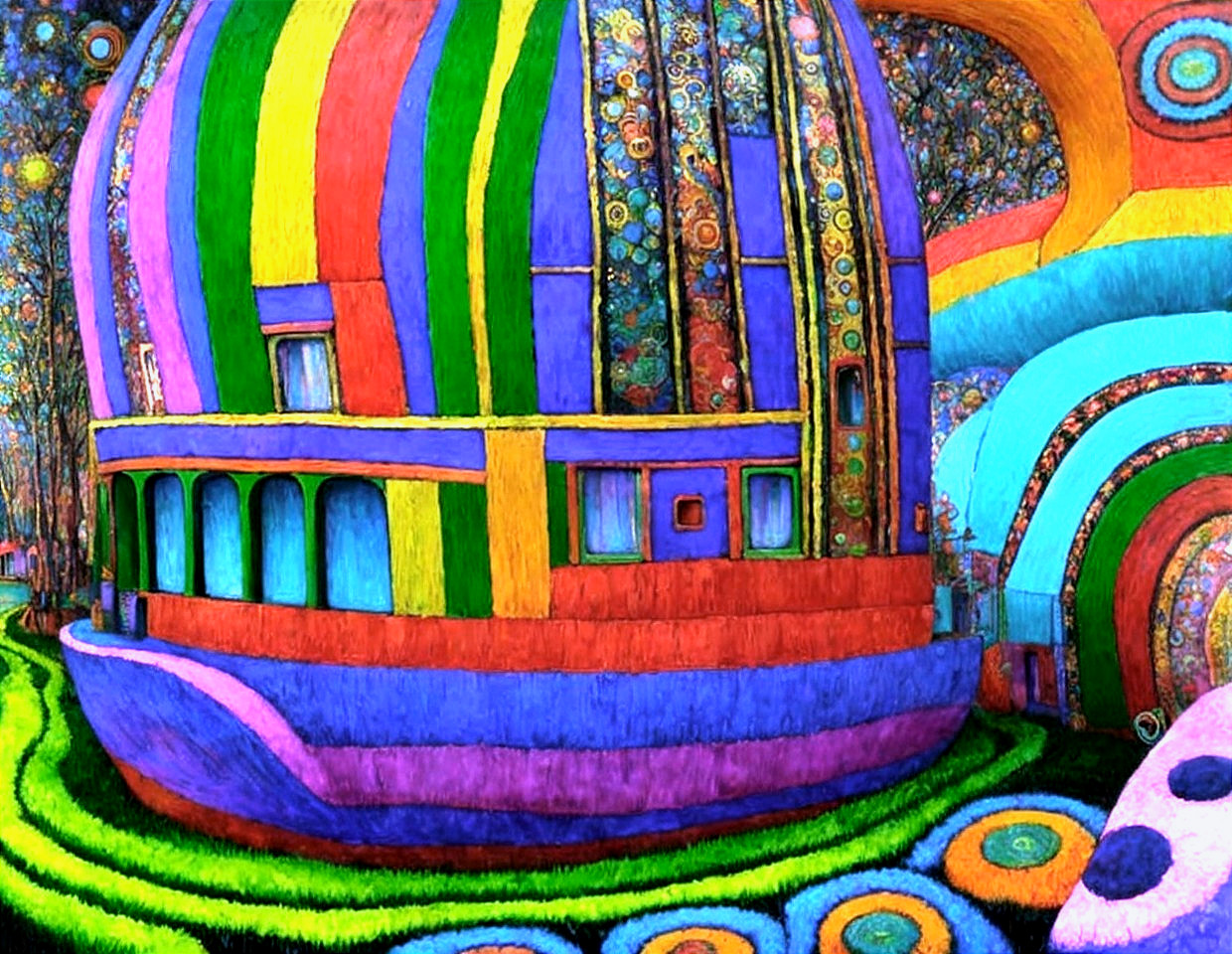 Prompt: 151515:["Waves of Spirited Harmony: The Dance of Vibrant Solitude" {painting by Hundertwasser, detailed pattern with mixed brush strokes size; Fine-line detail; a masterpiece; trending on artstation; maximalist; highly detailed and intricate}]