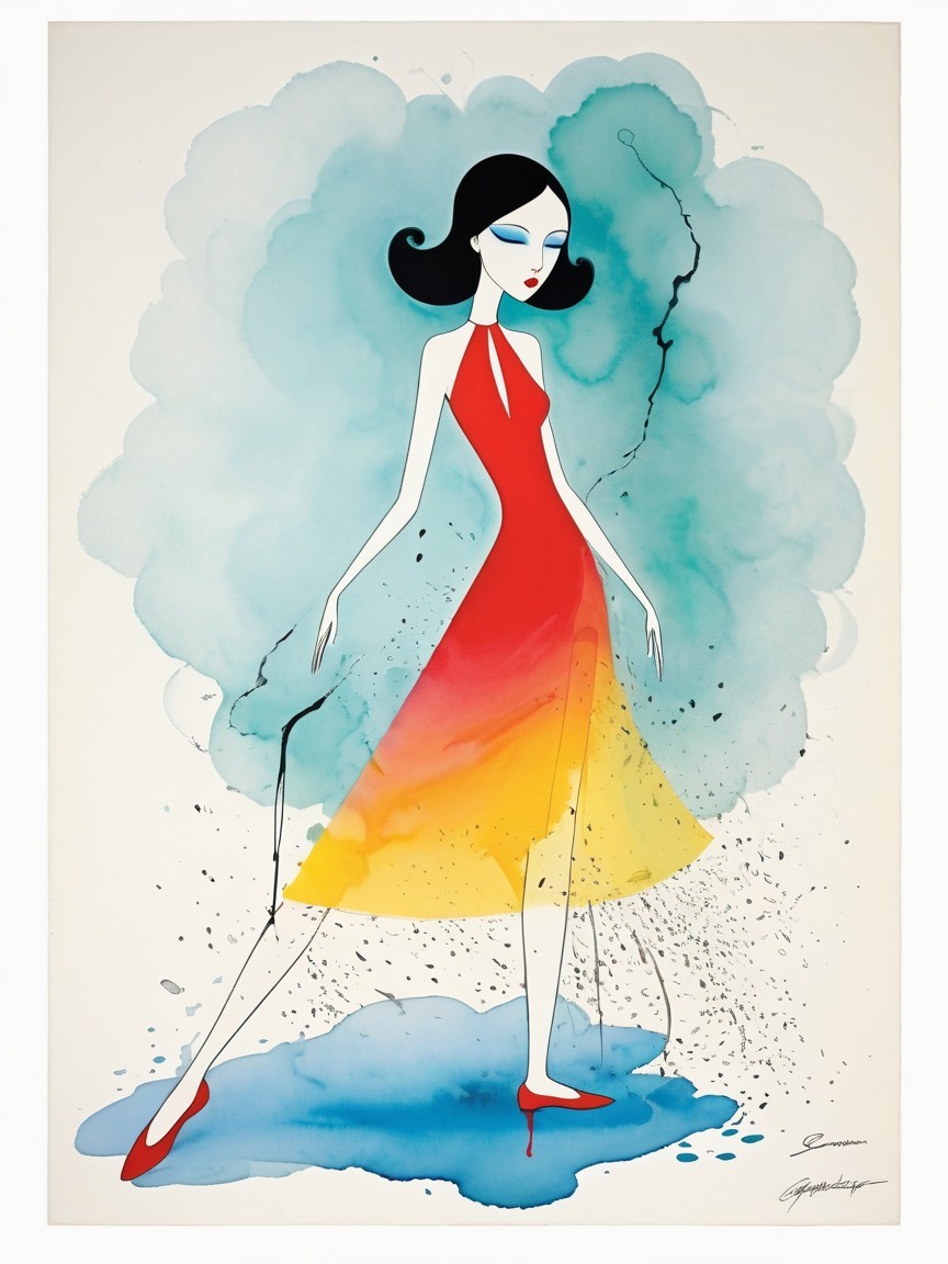 Prompt: [ (( Triadic Colorful Satire deeply undiscovered in the deepest depths of criminal caricaturized blasphemy, diaphanous vector dress zen vapor Delirium realm - The contortionist girl_lines abstract generated cracked brushstroke, R&F Pigment Stick® Techniques: covered in misty Trace Monotype Art by Stephen Hillenburg transfer into Gerald Scarfe f*cking hyper-maximalist dressed in artwork inspired by Dec Art like as: {Francisco Goya's Masterpiece by Stephen Gammell & by Endre Penovac & by Basil Gogos & Rudy Meeuwissen} : The Hauntingly Beautiful Artwork of Ryohei Hase as vector smoke art )) ] Morris Louis Alpha-Phi (1961)Tate