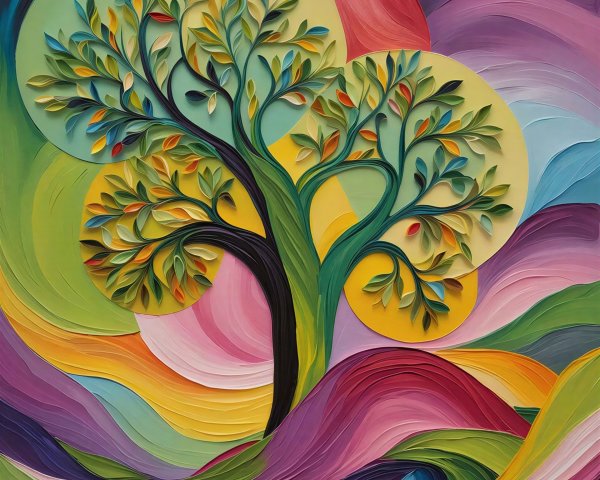 A vibrant butterfly with intricate, multicolored wings spreads wide against a soft, pastel background of fluffy clouds and foliage, creating a whimsical, enchanted atmosphere.