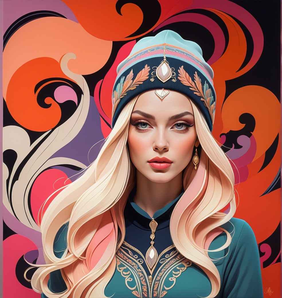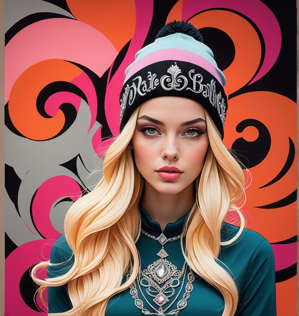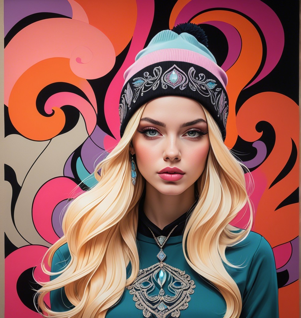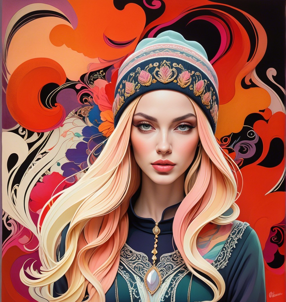 Portraiture in pen and ink, enchantress with beanie, golden ratio, drawn with colored ink, flowing lines. Lineage art, Multicolor woodblock print, mokuhanga style. Ukiyo-e, acrylic art, 3 point lighting, illuminated ink and pen, glossy, spectacular, highly detailed, grungy, style of david graeme Baker, juvenile, trans-Avantgarde merged with foampunk, parallax occlusion 1.2, reminiscent of sgraffitto style, contouring outlines, vibrant pastel coloring, stylized lineage drawing with calligraphic outlines by William Bradley, baroque, cel-shaded, somber baroness, raytraced shadows 1.2, elegant, rule of thirds, jewels, adorned with silver necklace and revealing attire, tonalism, woodblock print, stylized Portraiture by Hope Gangloff, ho baron, Viktoria Gavrilenko, Hoang Lap, Karol Bak, stan lee, mysterious, stacked lines, squiggly line-art, 3d effects 1.8, collage-style, hues by Georgia O'Keeffe,raytraced shadows, serene temptress with devilish eyes and tousled blonde hair, tesselated, meaningful bust of blonde hair, flowing hair illusion, crisp quality, headshot, Raytraced shadows 1.8, shadows, high contrast, relaxing ambience, soft lighting, warm soft soothing pastel tones, crisp quality, Pencil and ink alcohol ink, Dappled gaze, beautiful fantasy , warm coloring, reminiscent of pop art, blurry reflections, shadow mapping 1.7, primary colors, stencil style, anisotropic filtering 1.7, stippled, sculpted, marinism, stivolism, pencil sketch style, dynamic lighting 1.2, coffinwood 1.7, hues of pencil sketch, internal joy, serene expression, veined skin, crackled texture, polished, concept fusion, modern, intricate, fractal patterns, muted colors, optical illusions, close-up, blurry edges effect, eroticism, nuanced, lavish, grunge, coherent, otherworldly, gradient color inking, Comic book art merged with pulp art reminiscent of book cover art by Frank Fazetta, harsh lighting, luminism, tiny paint strokes, three-dimensional effect, stippled, uhd hdr, 64K, octane render,