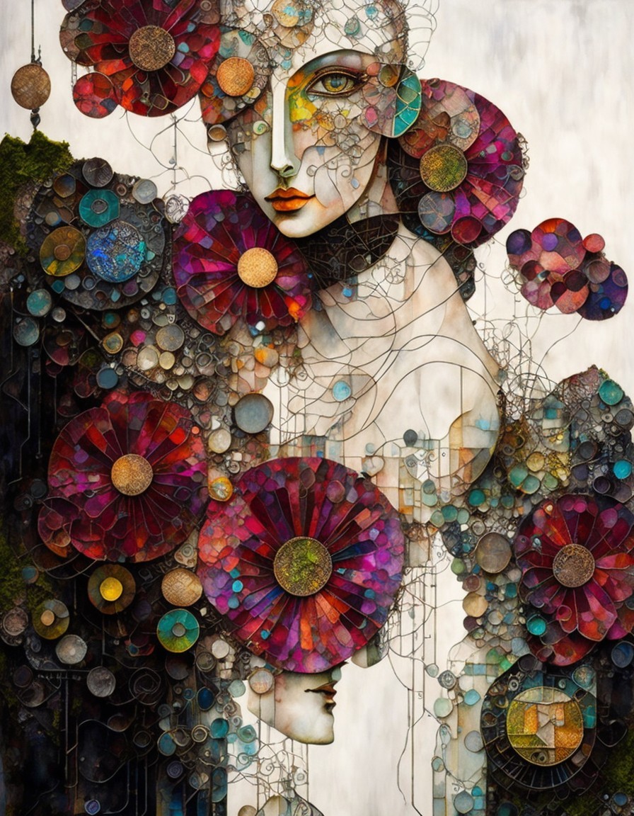 Abstract artwork featuring a face with geometric shapes and earthy tones resembling a cubist cityscape.