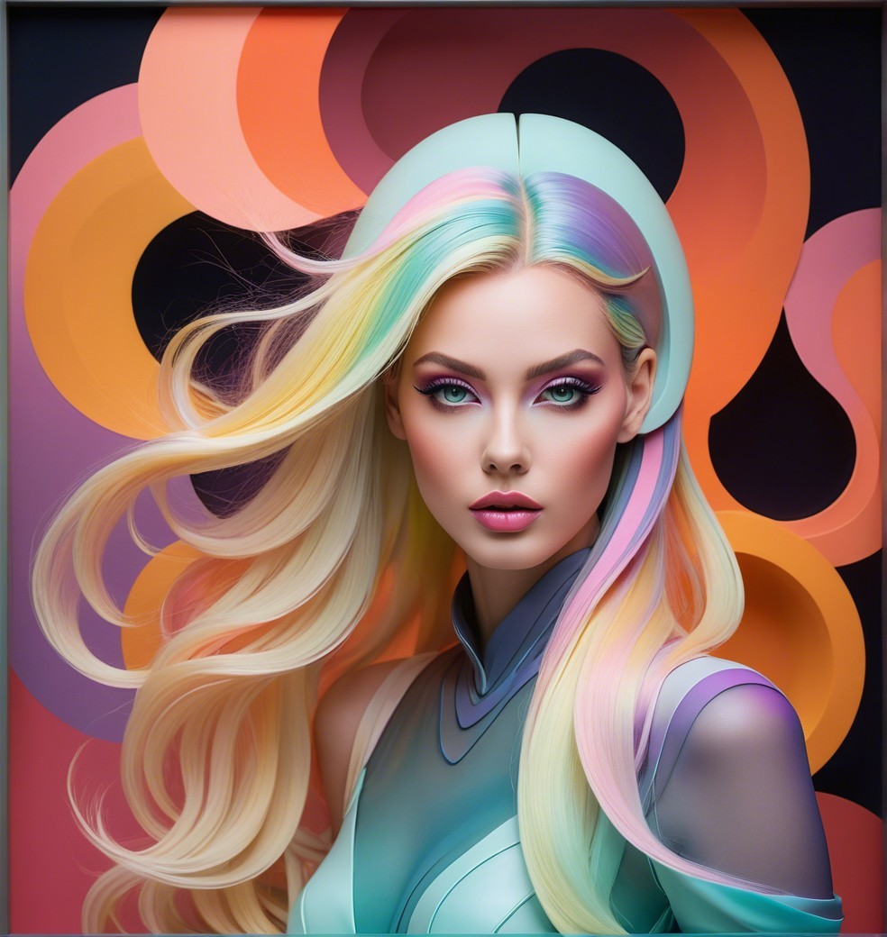 + Prompt:Portraiture, muted vibrant pastel colours, mist, elegant, fauvistic, headshot, tesselated, sculpted, retrofuturistic, divisionism,, beautiful configuration, contouring outlines by Susan Seddon Boulet, dappled lighting, dark fantasy art, octane render illustration 1.5, 3D line art, watercolor ink, extremely detailed, intricate, elaborate, fantastical, surrealistic, HDR, fractal, beautiful, fantasy, crisp quality,uhd, hdr, anisotropic filtering 1.7, parallax occlusion 1.2