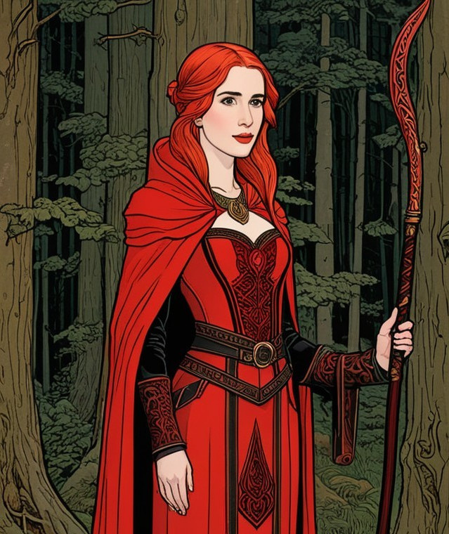 Title : "The Sorceress Wearing Red" ©2025 A.J. Jones.