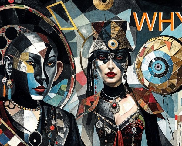 A vibrant fantasy scene features two sages in colorful robes seated by a tranquil lake under a large moon. Surrounding them are lush trees with autumn-colored leaves and a mysterious black figure in the background.