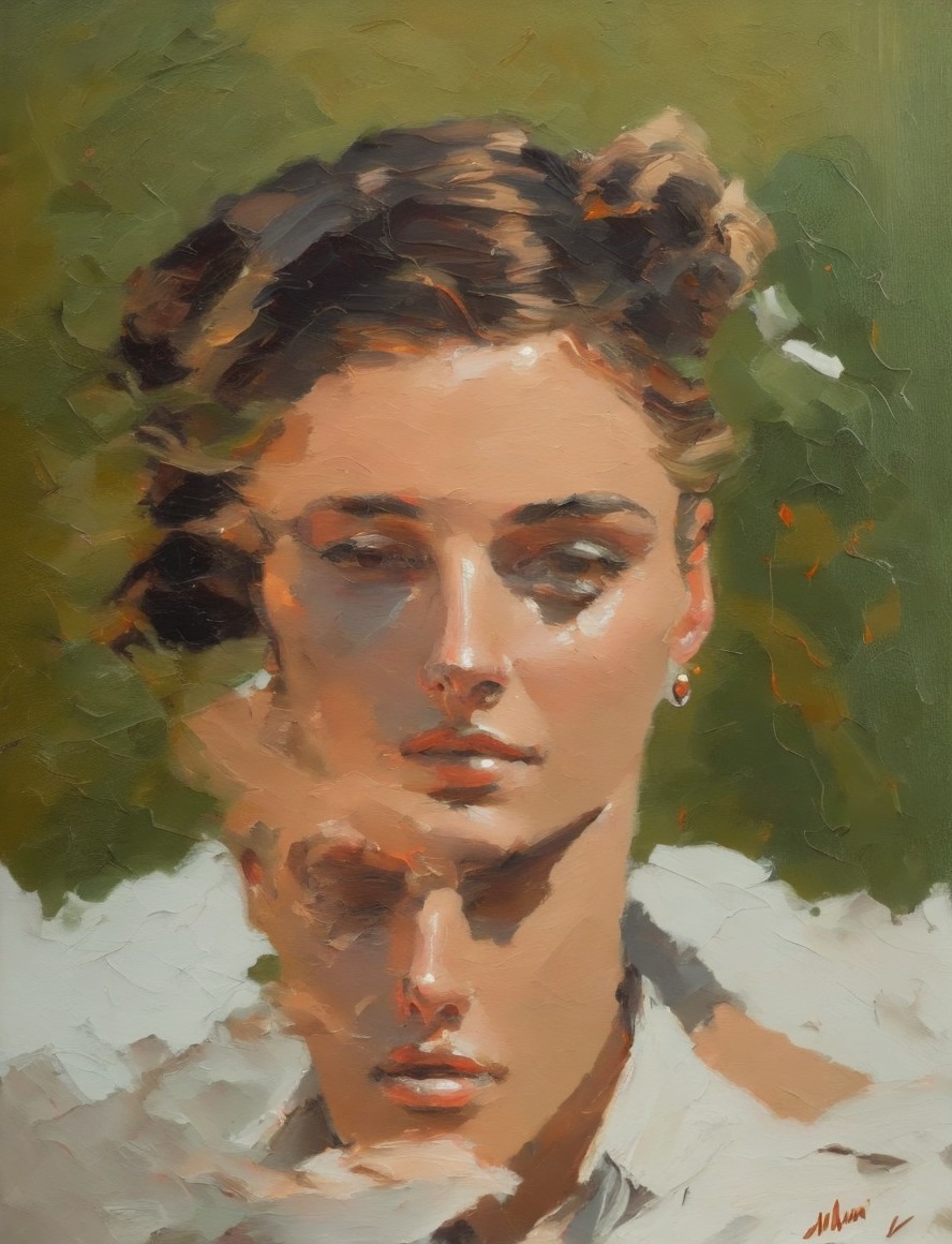 Portrait of woman with striking makeup and golden glitter on bokeh light background