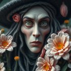 Haunting Figure Amidst Vibrant Flower Bouquet