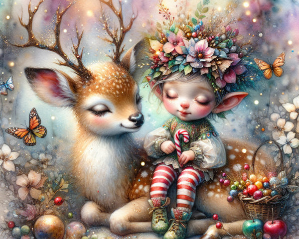 A picturesque landscape features a majestic castle by a serene lake, surrounded by mountains and vibrant autumn foliage. The scene is brightened by colorful flowers in the foreground.
