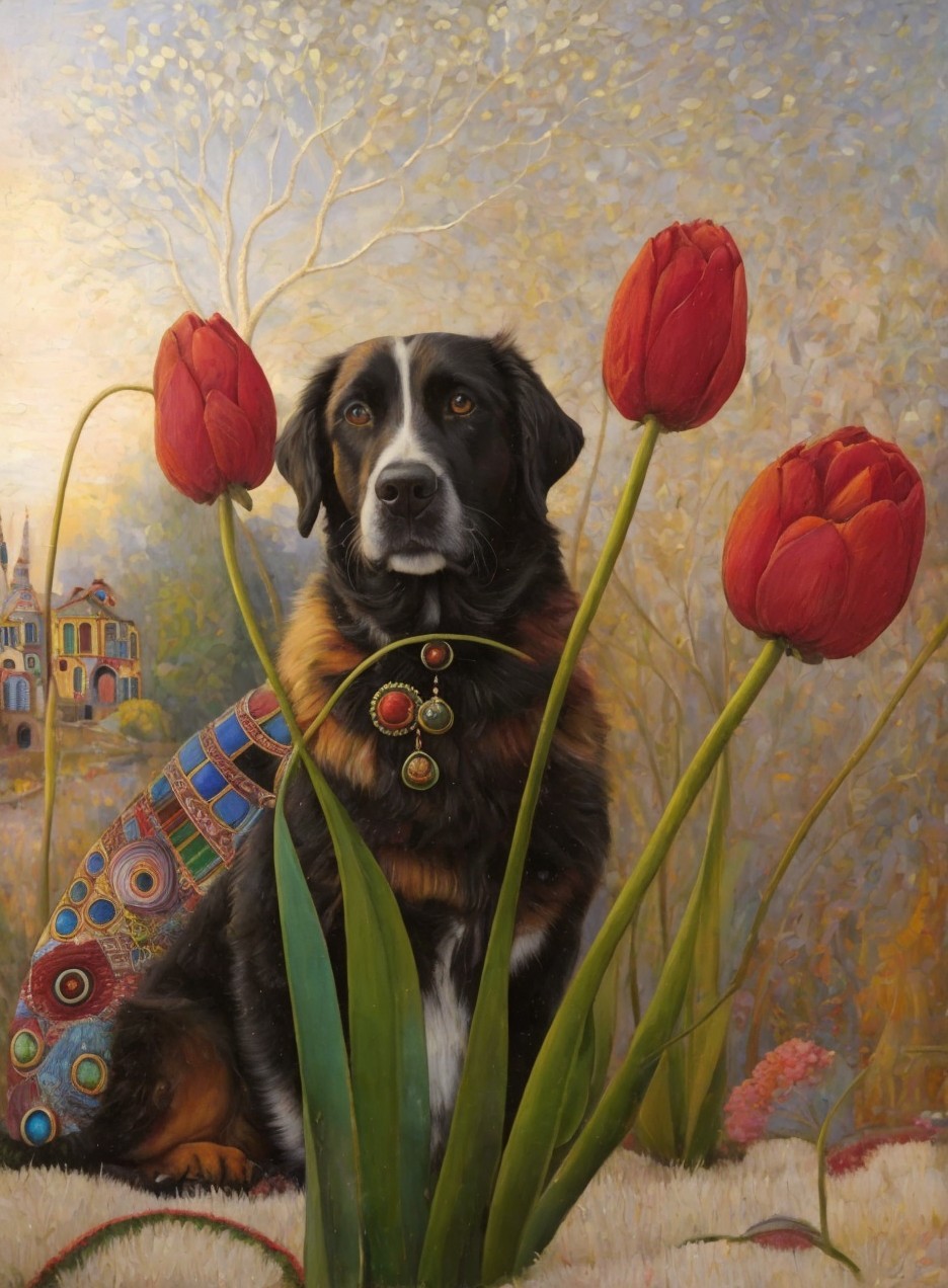151515:[painting by Hundertwasser, detailed pattern, beautiful dog]