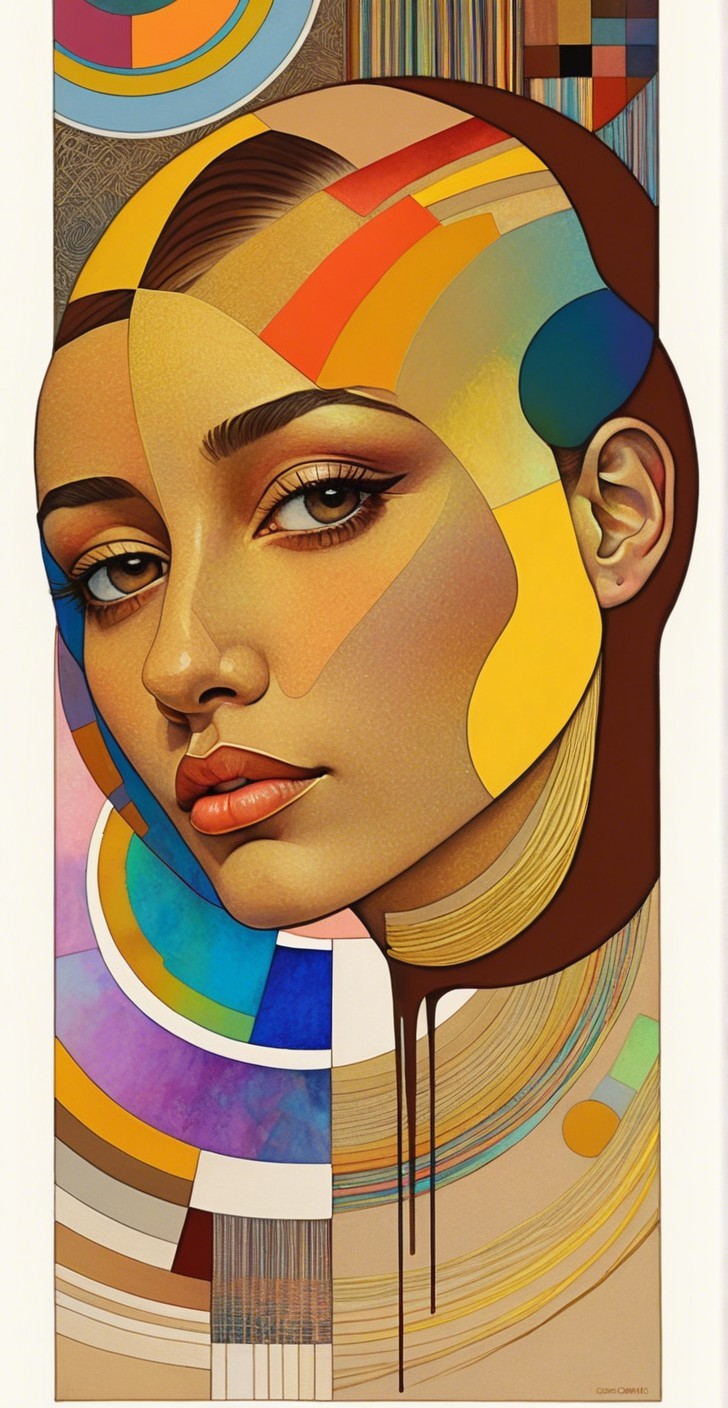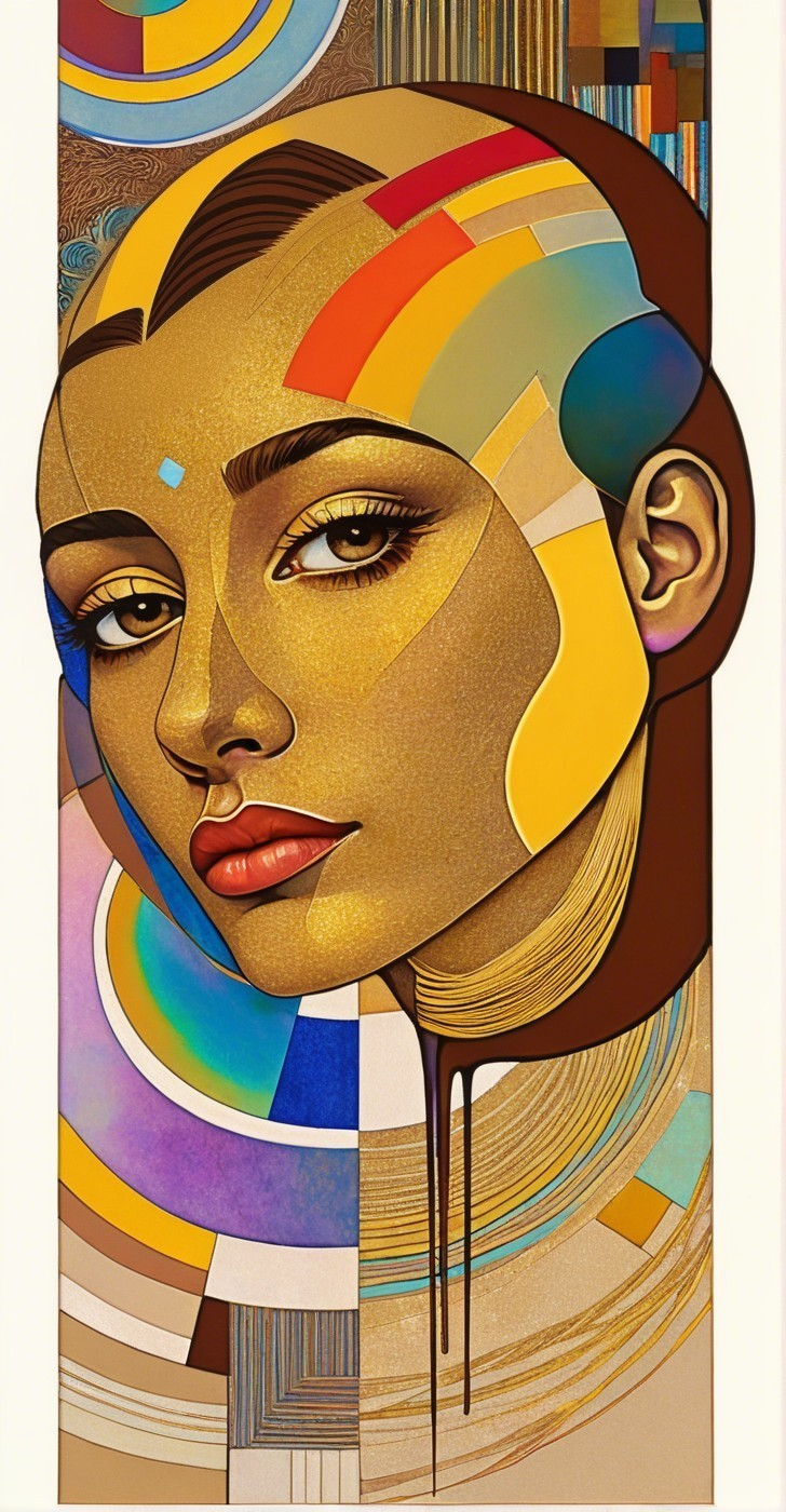 Figurative portrait, Style by Paul cadmus, Color glitch, melted, headshot, tiny strokes, zentangle method, patchwork, geometrical, stylized lineage illustration, plasticity 1.3, auracore 1.7, highly detailed fantasy illustration by Qian Xuan, detailed lineage, detailed line-art,, Zentangle Art, stacked lines, glossy, headshot, panavision, geometrical iconography, high definition rendering, iridescent Watercolor overspray, fantasy art by Florianne Becker and Paul cadmus. Warm pastel colors of beige blue gold, bioluminescent eyes, liquid-pearlescent-plasma and prismatic tilting, 3d effects, multi-layered, rystuc, cottagegore 1.2, multi-perspective, chromatic induction, metallic sparkle, hues by Alex Schomburg, tissue paper texture, intricate complex hues, peeling paint, soft dark reds, soft yellow, warm sienna, emotional, wet on wet details, golden ratio, gold foil, golden ratio, divisionism, wisp-like filigree details in golden-red foil, layered, tesselated, stippled, sculpted, overexposed, balance, soft dappled lighting, hues by Brad Kunkle, dyed, stacked-up perspective, stacked lines, cel-shaded, dethereal, stylized geometrical patterns, reminiscent of suprematism, 3 layers of dof, floating, multi-layered eyes, gradient inking colors, octane render, Pen and ink sketch, green-blue and orange watercolor, grunge, coherent charcoal textures 1.7, overall composition by Ralph Steadman and rufus dayglo and Rashid Nurmukhametov.weathered, physically based, plasticity 1.3, complexion 1.1,