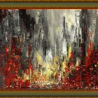 A cozy still life featuring a skunk draped elegantly in lace on a wooden table. Nearby, decorative vases with flowers and a bowl of red fruits enhance the charming, serene ambiance.