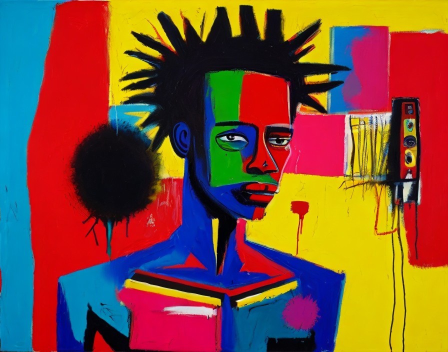 Colorful Abstract Painting with Bold Shapes and Liquid