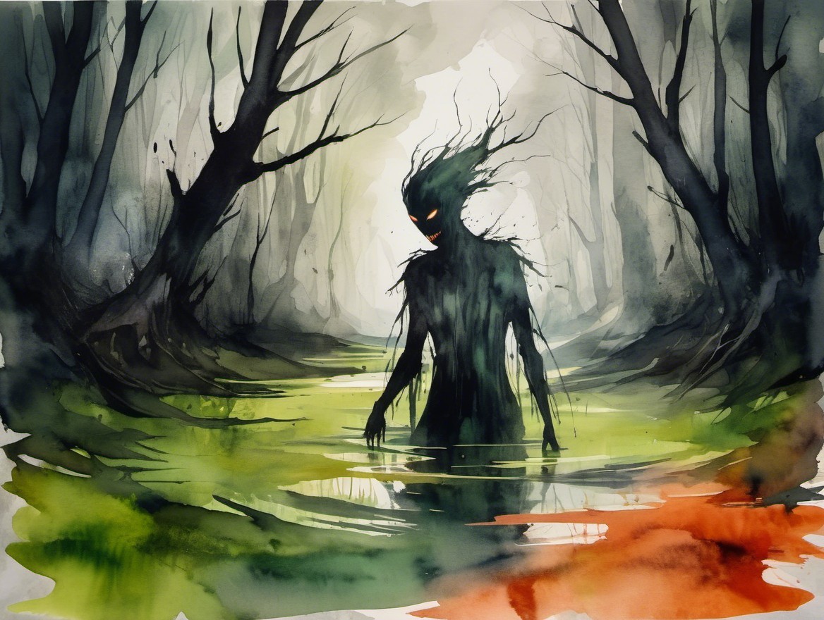 A dark, eerie silhouette emerges from a misty bog. Maybe you should skip a walk through the woods this night.