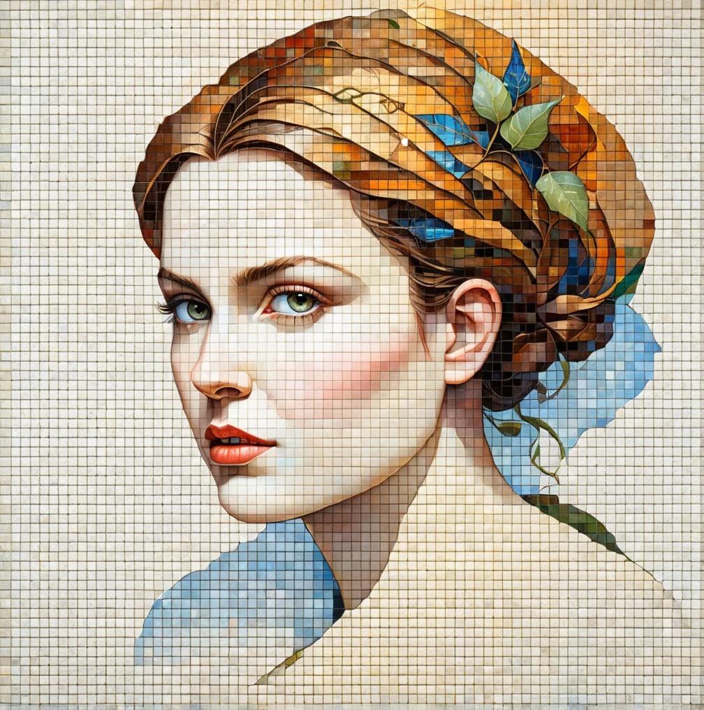 mail art, medieval, oil on canvas, fairytale art on cracked paper, epic, dynamic poster, portrait, dynamic pose, light and shadow, sharp glowing eyes, vines, by Michelangelo, James Jean, Andy Kehoe, patchwork mosaic stained glass background, highly detailed intricate, high quality, luminism