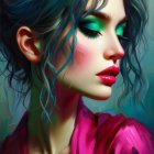 Close-Up Portrait of a Woman with Dramatic Makeup