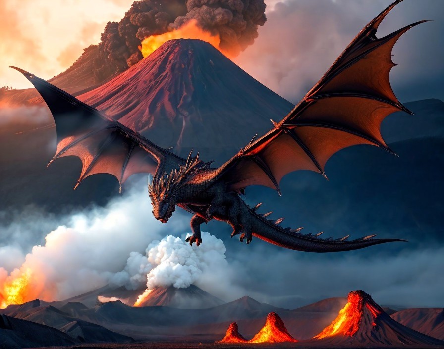 dragon riding  amidst volcanos
