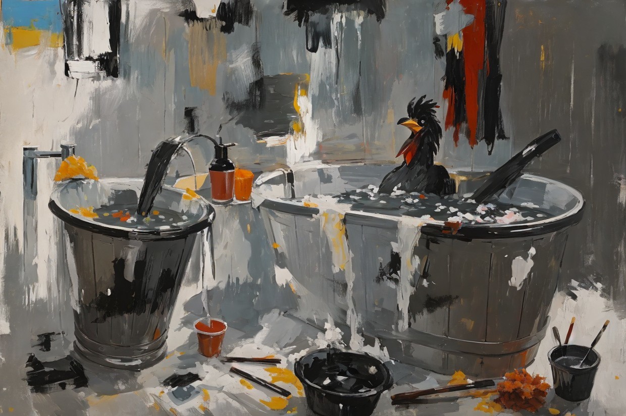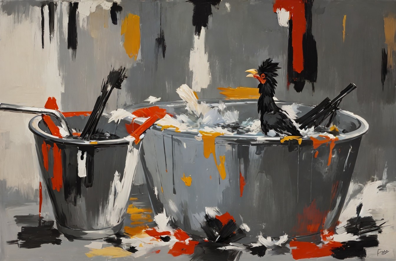 Metallic Buckets with Colorful Liquid and Chicken Nuggets
