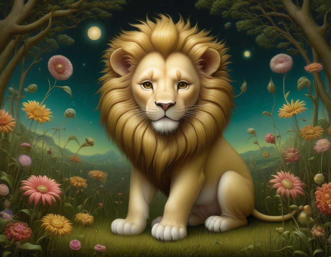 beautiful lion-human hybrid MALE,grasslands by mark ryden, nicoletta ceccoli, naoto hattori, fractal psychedelic, lsd, electricity