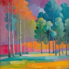 The artwork features a vibrant landscape with stylized trees and rolling hills. Soft colors blend harmoniously, depicting a serene scene filled with a whimsical, dreamlike quality.