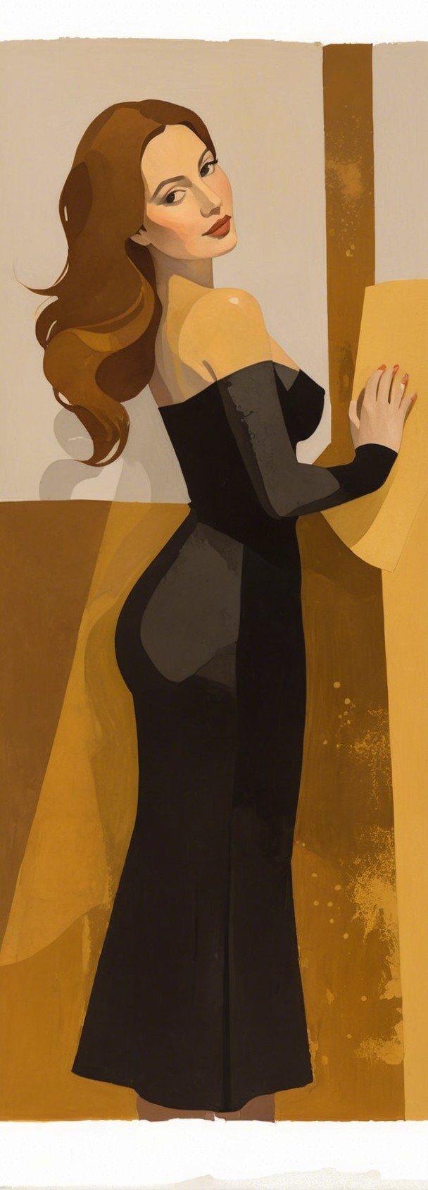 + Prompt:3/4 body female portrait, tetraedic color scheme ochre light-yellow light-black beige, orphism, joyful, intricate sgraffito by Niko Pirosmani and Mikhail Vrubel, watercolored book illustration, implied linework patterns, thinned paint splatter and wet ink effects, indiecore illustration style, contouring outlines, pastel color palette, stencil-style merging with cubism, Art Deco and street-art influences, complex lines, warped, simplified shapes for 3d effects, enclosed color shapes, delicate surrounding outlines, enlightened line-art details, plasticity 1.3, linework, contouring outlines by Freda People, merged styles of Mikhail Vrubel & Francisco de Zurbaran & Chaim Soutine, alcohol ink coloring by peter wileman, exaggerated stylization by Jean-Michel Basquiat, lighting by Raoul Dufy, abstract expressionism by Roberto Matta & Hope Gangloff, dyed by Igor Tuveri, hues by John Philip Falter, flabbergasting geometrical stylization 1.8, cracked paper texture, small brushstrokes with defined edges, tiny and lean lines, orphism, abstracted collage reminiscence, fusion of synthetic essence and abstract art, color palette inspired by William Bradley's and Carne Griffith's coloring style, linework with cuts, encompassing textures, embraced linework. seeping coloring, stylized artwork, dyed, UHD, HDR, high luminosity, color glitch aesthetics, linework for a warm and balanced coloring by Ed Binkley, embodiment by Ho Baron, slightly exaggerated features, serious intricate outlining, slightly warped features with geometric detailing, restrained stippled effect, watercoloring, angled, stylized female headshot blending geometrical elements with bold linework, featuring geometrical 3D effects by Stan Lee and Ho Baron, tints by William Bradley, rectangles in pale red hues, deep dark-pink shades, warm asymmetrical color gradients inspired by orphism, biomechanical intricacy, embodying a delicate balance between stylization and geometrical precision, avantagarde style, anthropomorphized, custom_loss: edge, asymmetrical composition with flowing light, slightly warped,