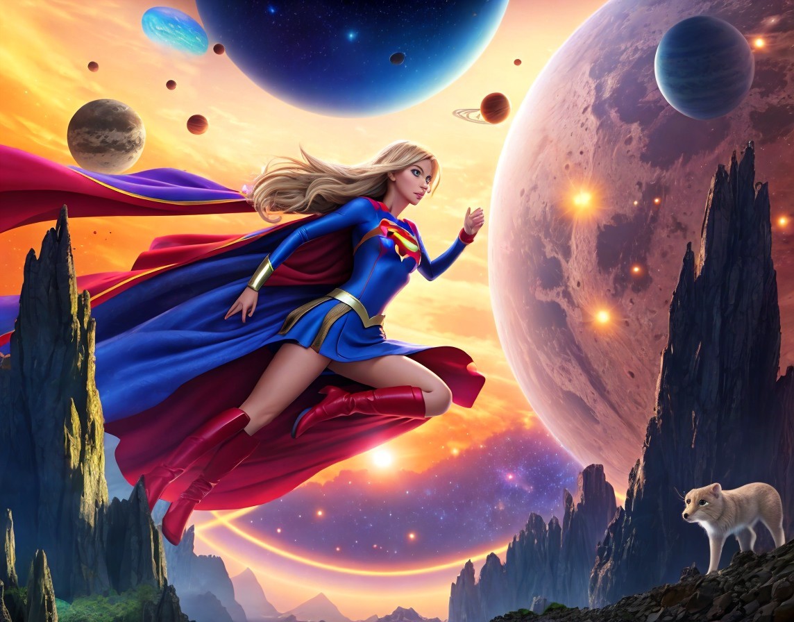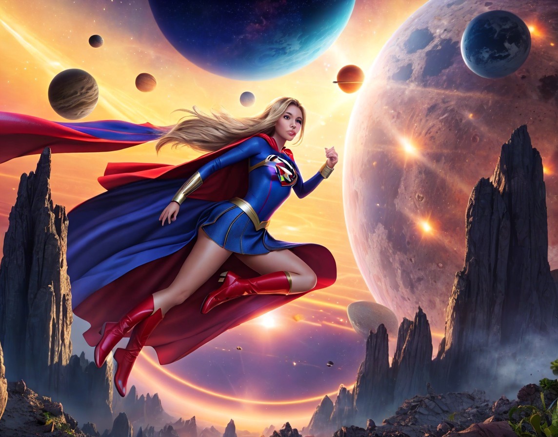 Supergirl llegando a otro planeta
