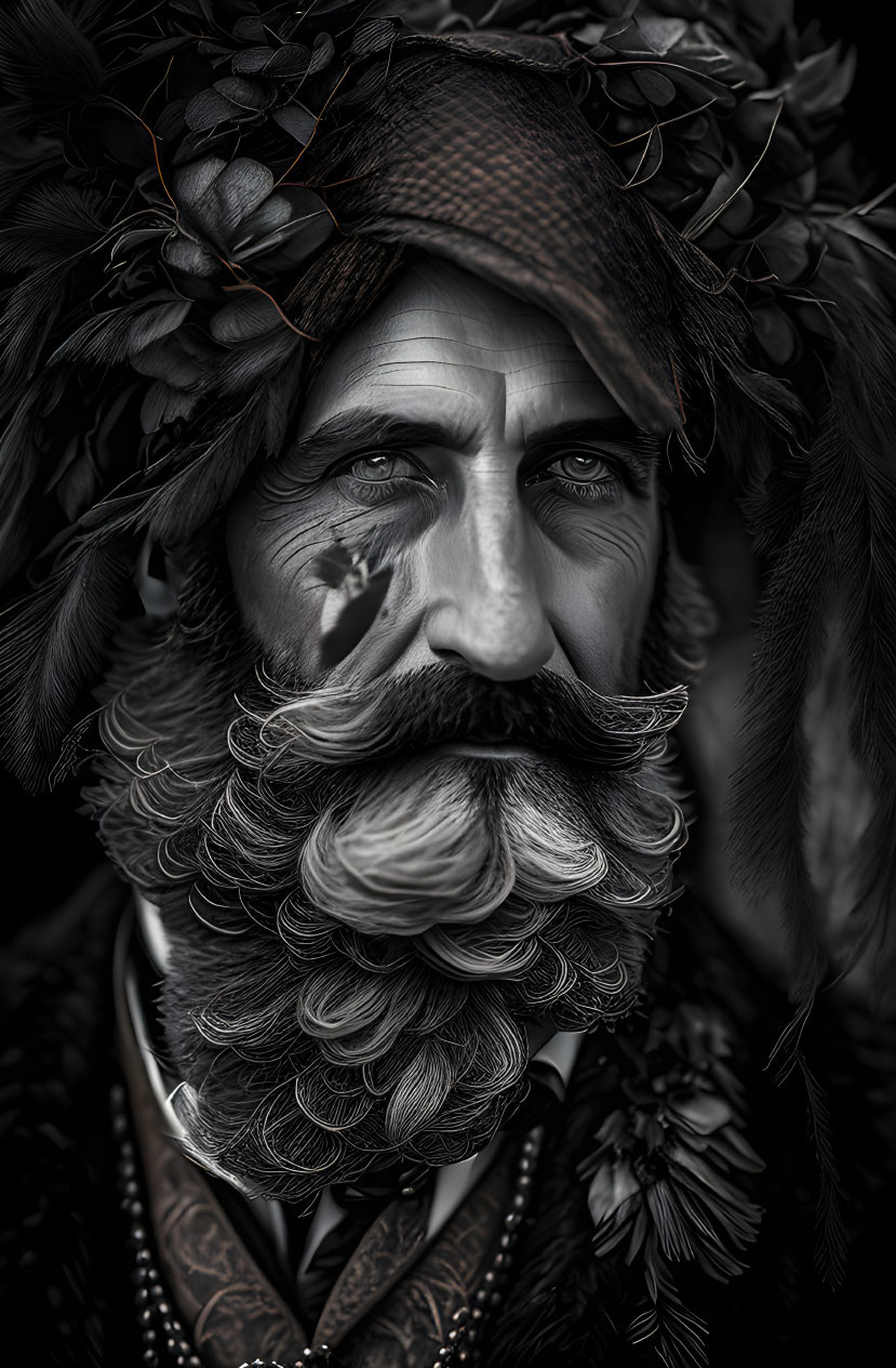 + Prompt:{Rustic steampunk gentleman with two birds nesting in his massive, burly bristled beard} [Close-up head and shoulders portrait of an 1890 vintage visage] :: watercolor, charcoal, ink, by Pablo Picasso, Wlad Safronow, René Magritte ::
