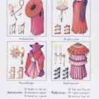 The image features a colorful gown with a vibrant pink base and intricate pleated designs, adorned with ruffled sleeves and golden accents, showcasing a unique and artistic style.