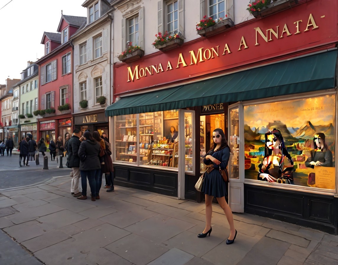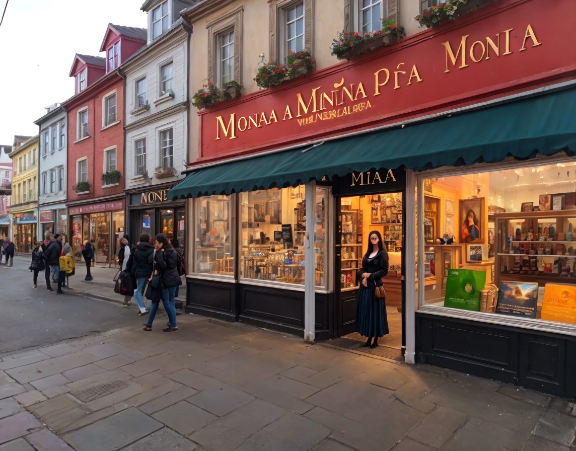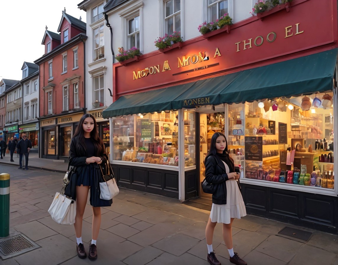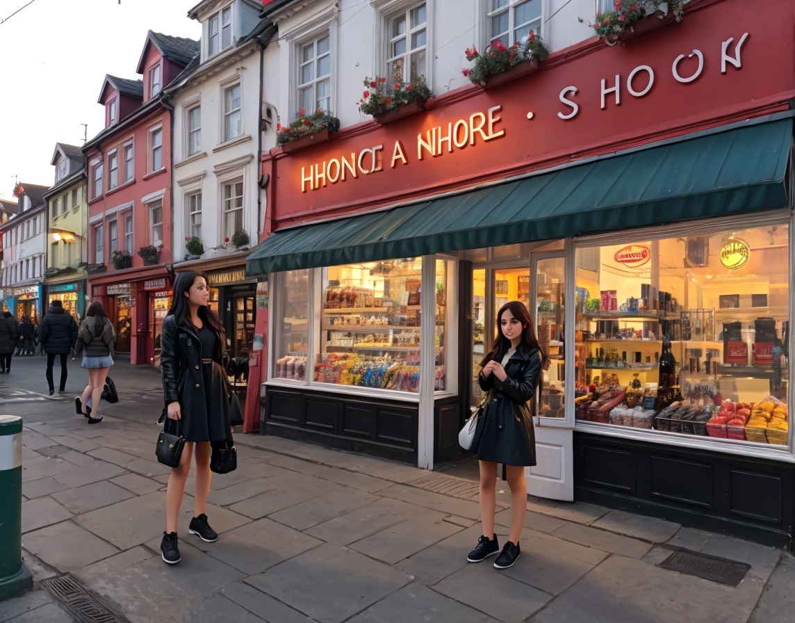 Women in Black Outfits by Quaint Shop at Night