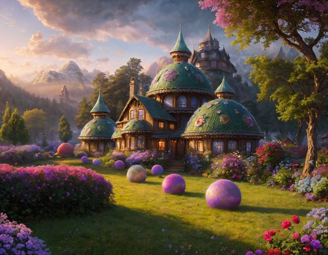 Whimsical Fantasy Landscape with Colorful Domed Houses