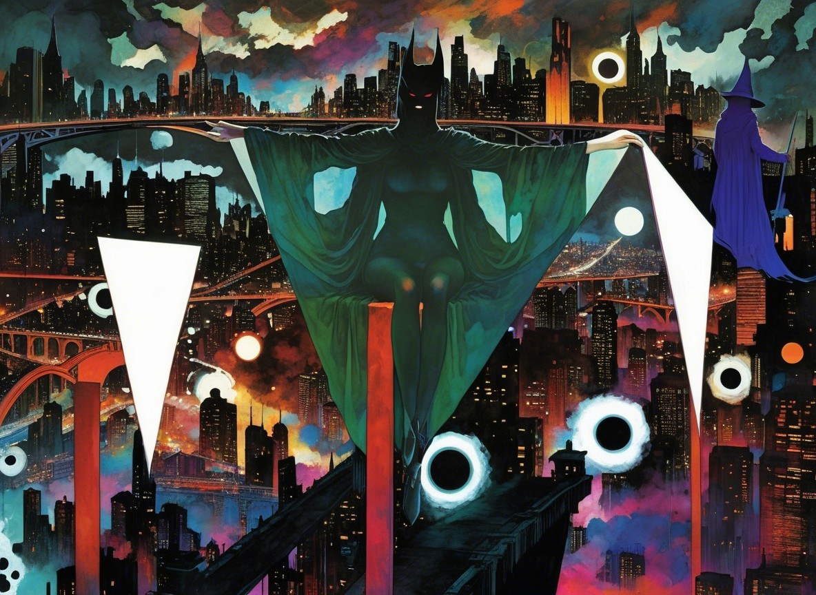 More about Mystical Figure in a Dreamlike Cityscape Not Bat Not Man