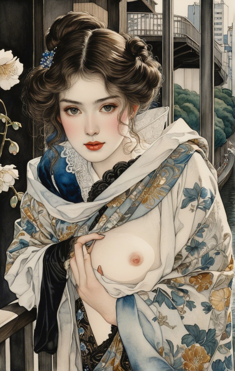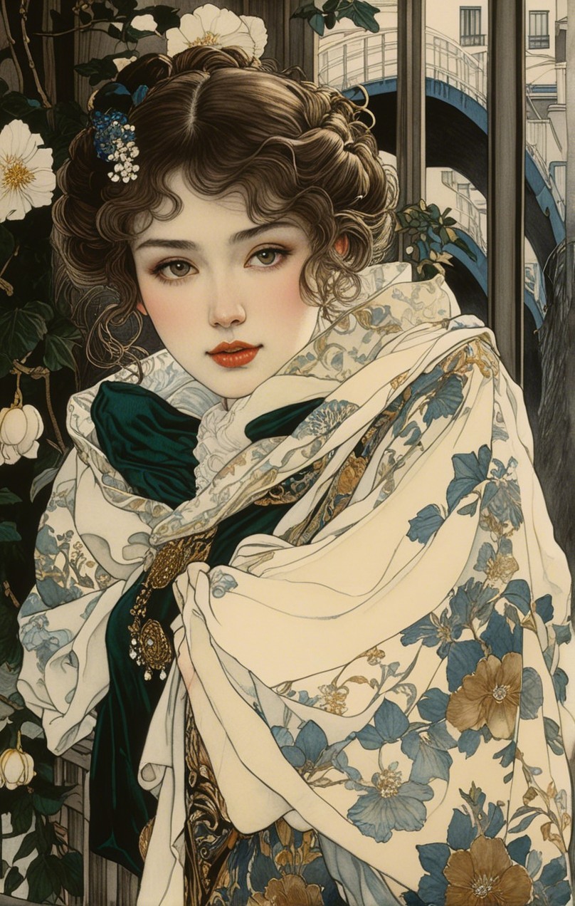The image features a captivating woman adorned in intricate patterns and a flowing garment, surrounded by delicate lotus flowers and golden accents against a dark background.