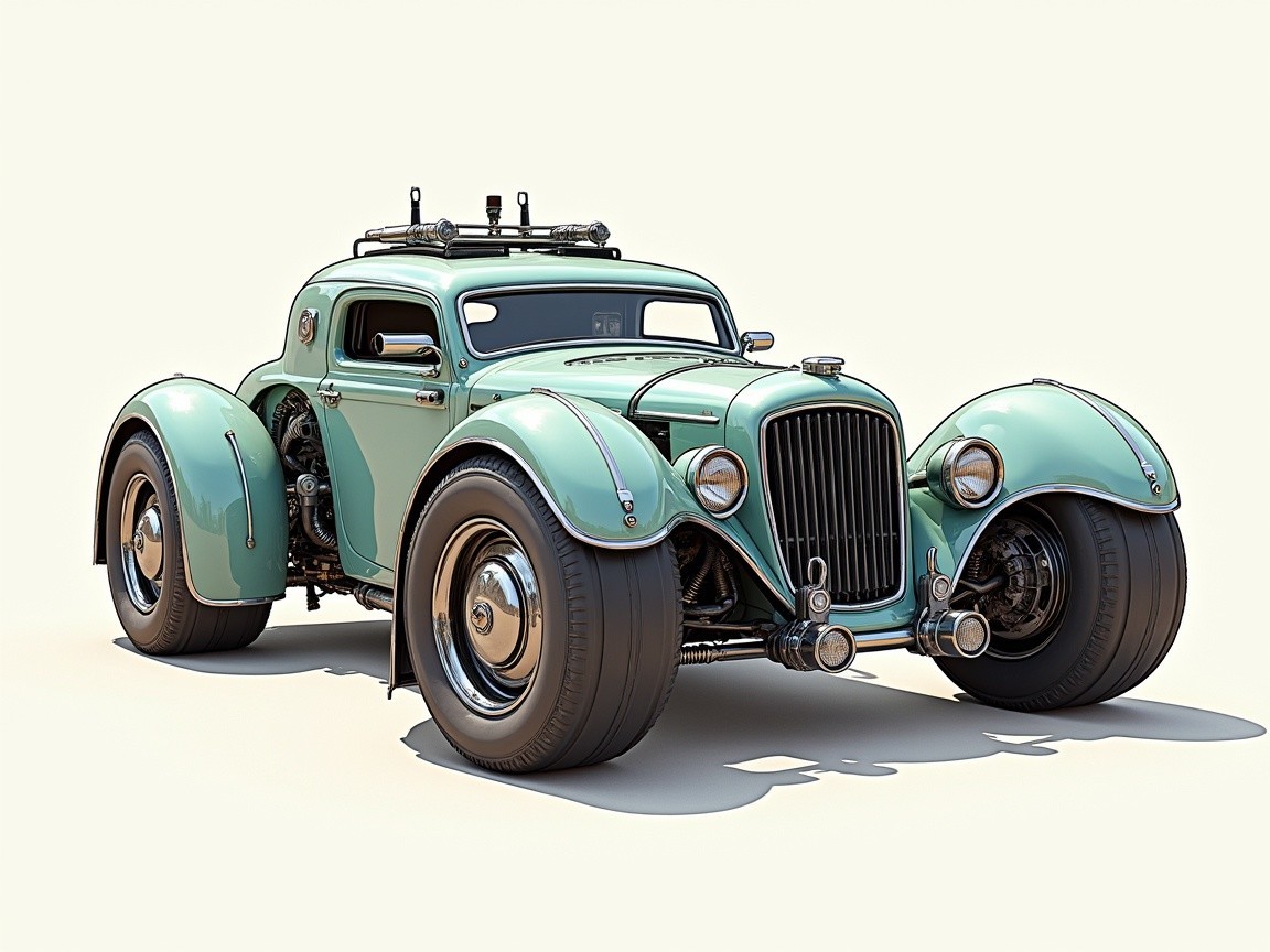 Prompt: "A majestic, digital 3D illustration in the style of Japanese mecha art, reminiscent of Syd Mead's futuristic designs, blended with the intricate details of Hayao Miyazaki's sci-fi worlds, and the sleekness of H.R. Giger's biomechanical creations. A complete, fully colored schematic of a FutuRetro Car Concept Design , proudly displaying its mechanical profile in a full, upright side view."
