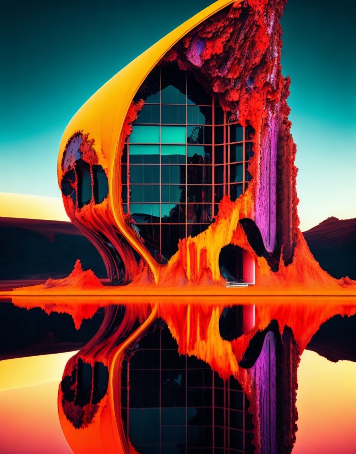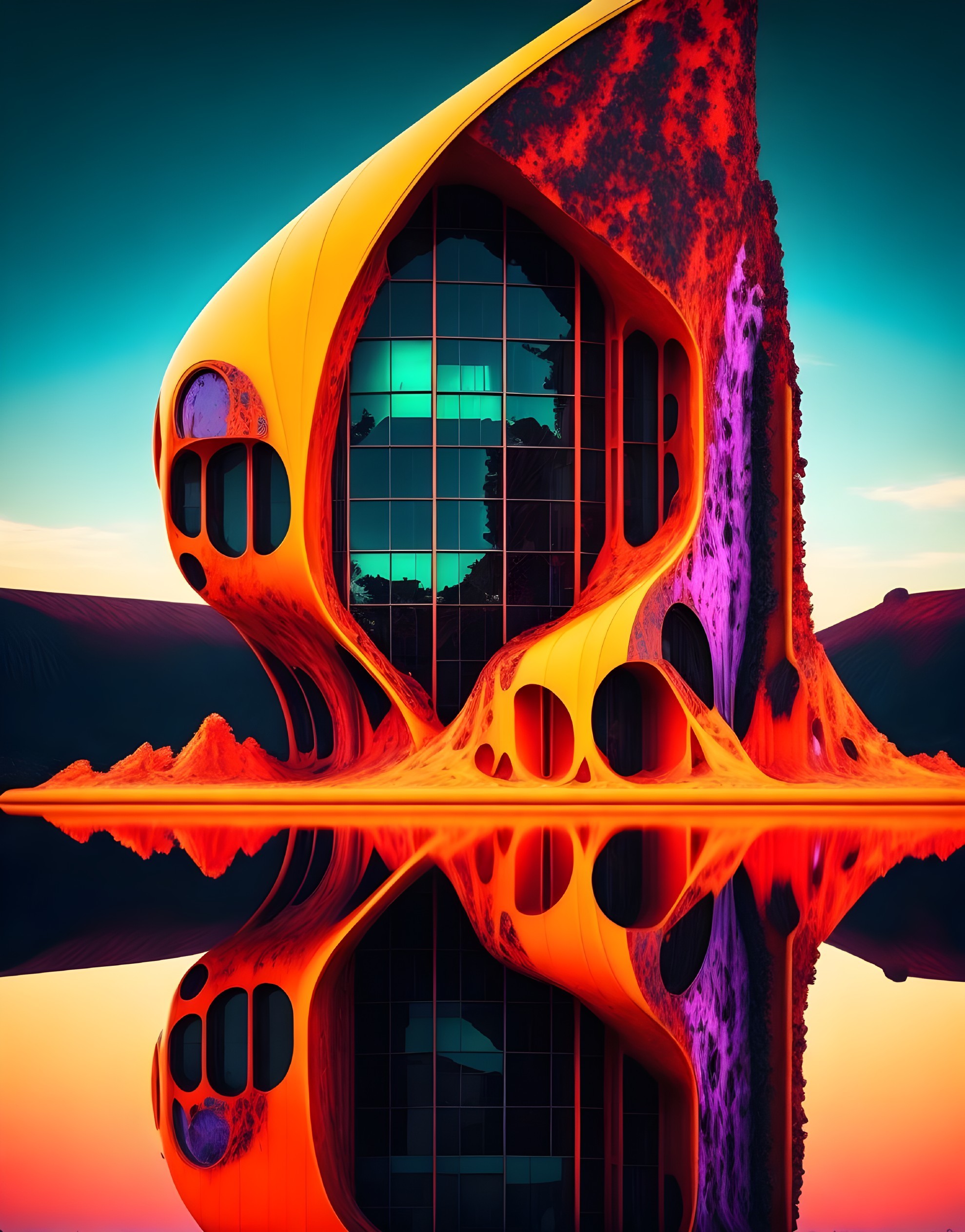 Organic Design Futuristic Building with Glass Panels at Twilight