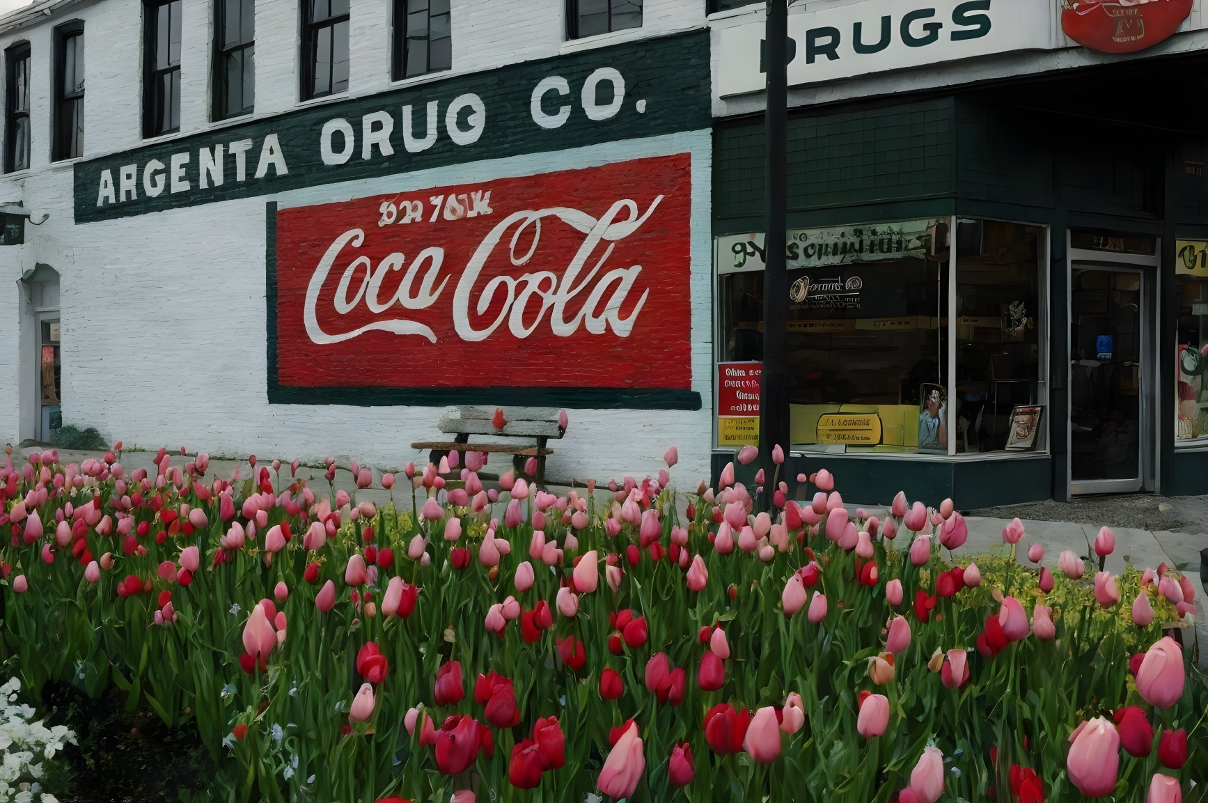 Vibrant Street Scene with Vintage Coca-Cola Mural