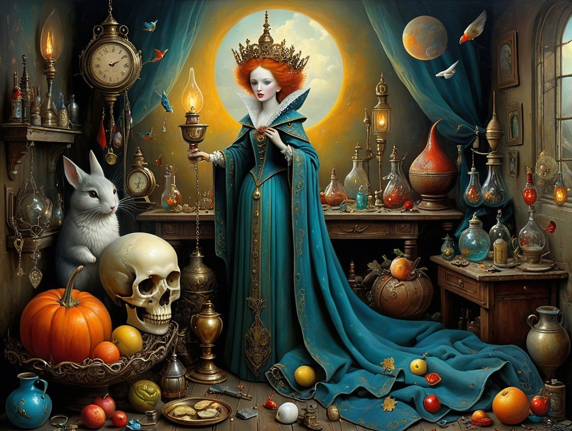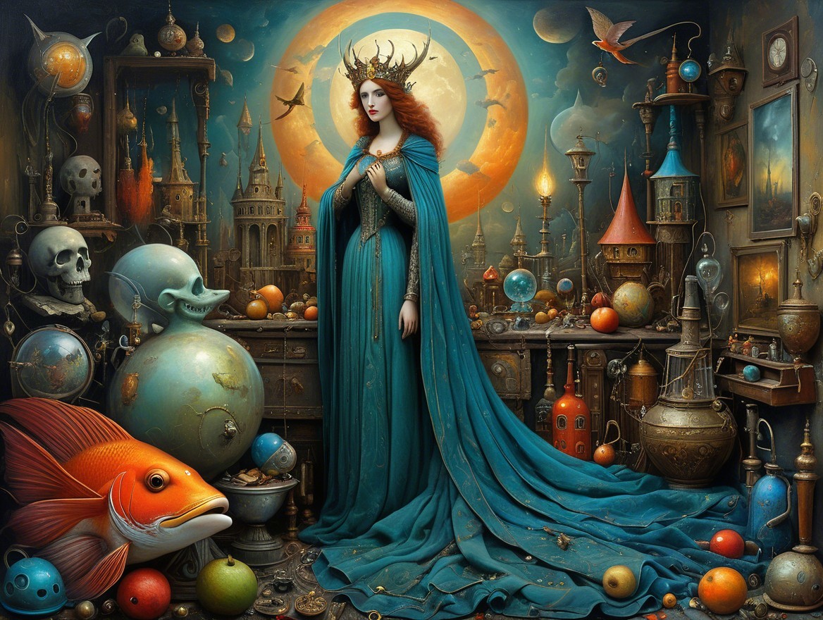 + Prompt:from the chaos in my dreams, still life, Old magic and raw power, intricate oil on canvas crisp quality Fine art America painted by Alexander Jansson