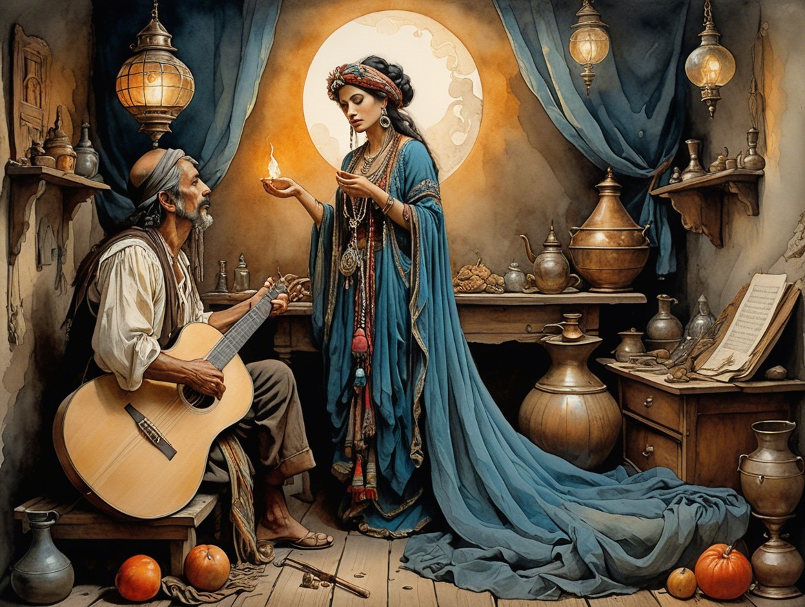 . Art by Andrew Wyeth, Erin Hanson, Klimt, CE brock, H. R. Millar, Dee Nickerson, Arthur Rackham. 3d, extremely detailed, beautiful, watercolor and ink, mixed media, Best quality, Very high definition, super clear resolution, cinematic, intricate, fantastic view